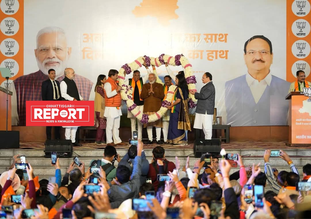 दिल्ली: भारतीय जनता पार्टी (भाजपा) ने दिल्ली विधानसभा चुनाव में शानदार प्रदर्शन करते हुए शनिवार को आम आदमी पार्टी (आप) को राष्ट्रीय राजधानी की सत्ता से बाहर कर 27 साल बाद धमाकेदार वापसी की। पार्टी की जीत के बाद प्रधानमंत्री मोदी दिल्ली स्थित भाजपा के मुख्यालय पहुंचे और पार्टी कार्यकर्ताओं का आभार जताया। उन्होंने अपने संबोधन की शुरुआत ‘भारत माता की जय’ और ‘जय गंगा मैया’ के नारों से की। उन्होंने कहा कि आज दिल्ली में दिल्ली के लोगों में एक उत्साह भी है एक सुकून भी है।