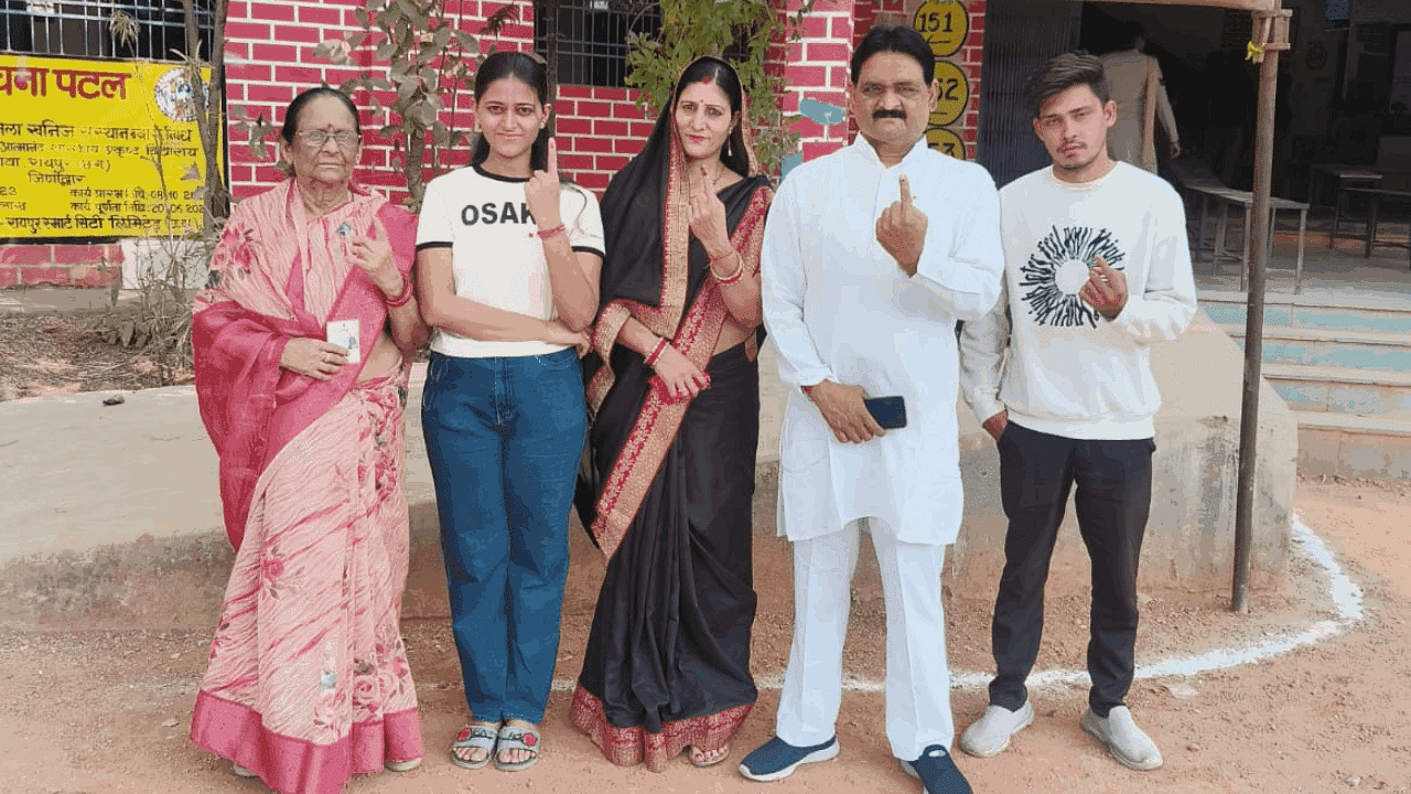 भाजपा प्रदेश अध्यक्ष किरण सिंहदेव ने परिवार संग किया मतदान