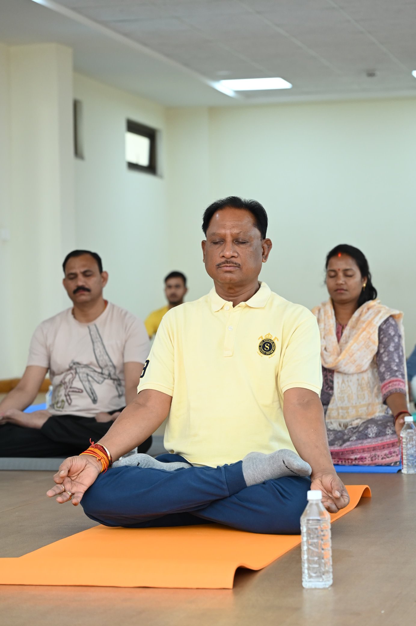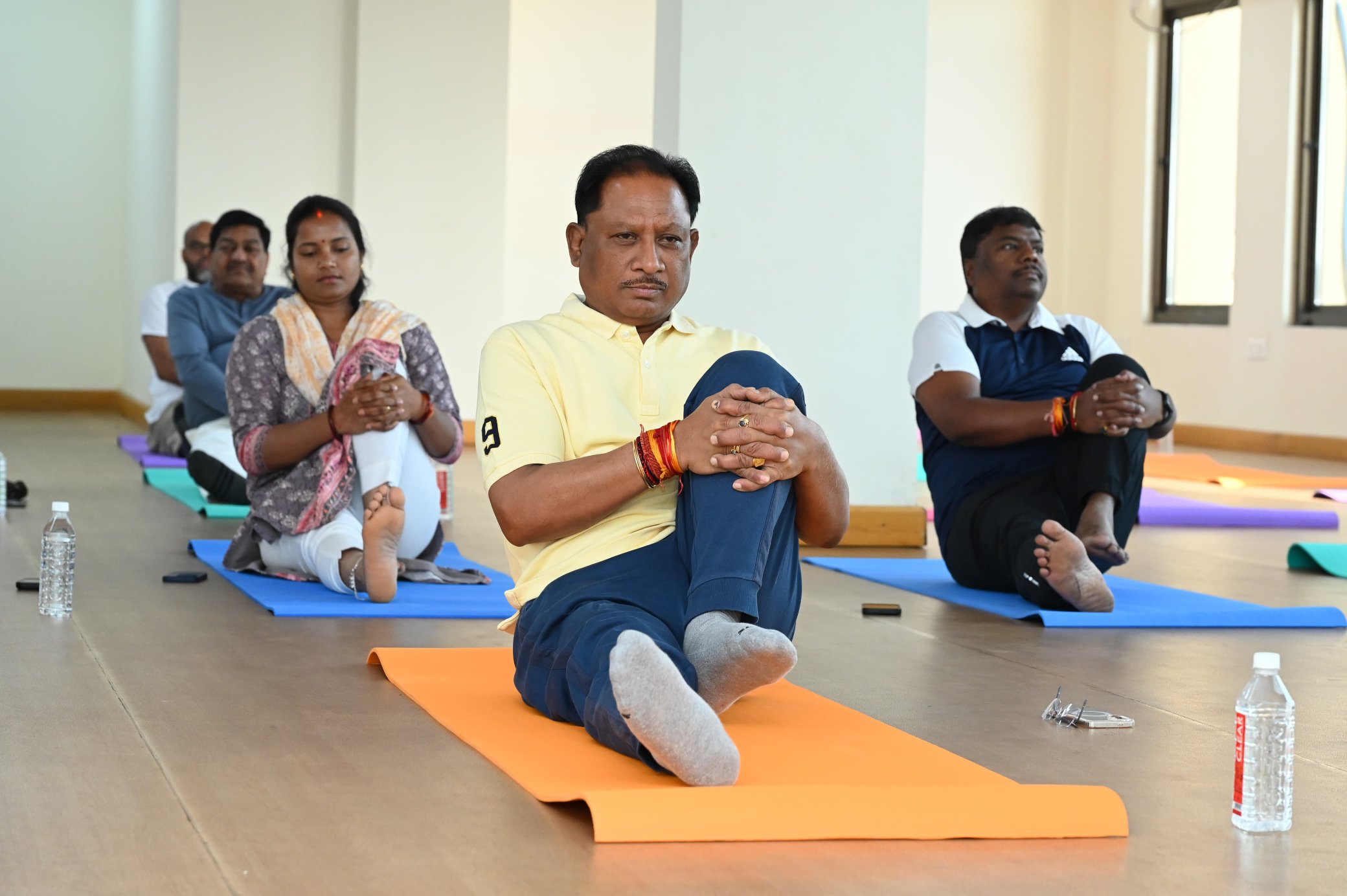 रायपुर। राजधानी रायपुर स्थित भारतीय प्रबंधन संस्थान IIM में आयोजित दो दिवसीय चिंतन शिविर के दूसरे दिन आज सुबह मुख्यमंत्री विष्णुदेव साय ने अपने मंत्री मंडल के सहयोगियों के साथ योगाभ्यास किया।